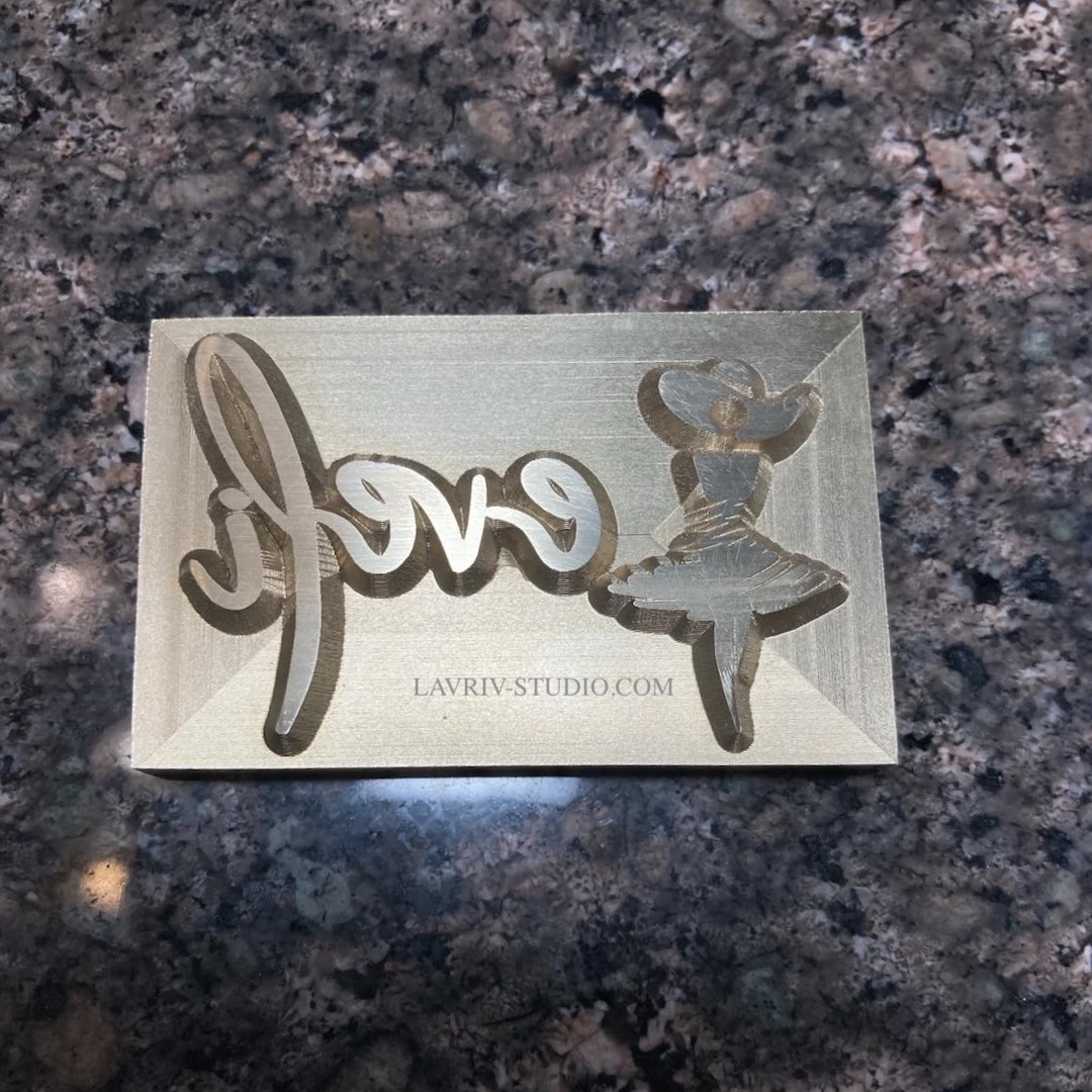The stamp was produced using precision CNC milling. Solid brass was selected due to its excellent thermal conductivity and durability, making it ideal for repeated hot stamping in small-scale production.